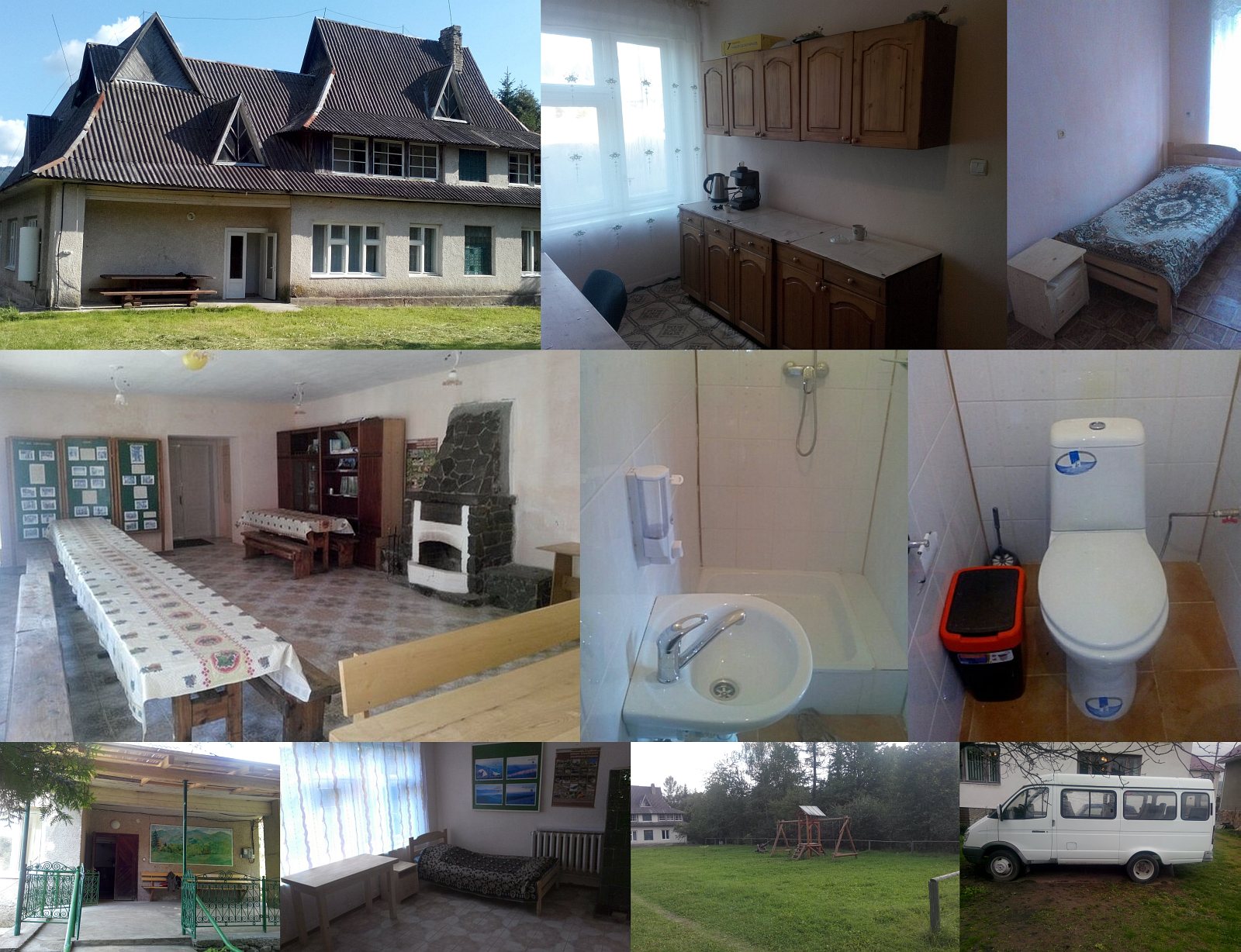 Ціна: Celoročně (léto i zima): pokoj se společným soc. zařízením 230 UAH/os/noc, pokoj s vlastní koupelnou 260 UAH/os/noc. Snídaně 100 UAH, oběd 117 UAH, večeře 100 UAH. Sauna (pro 7 osob) 400 UAH/hod. Za provedení rezervace příplatek 20 %. Za vjezd do Karpatské rezervace 20 UAH/os.