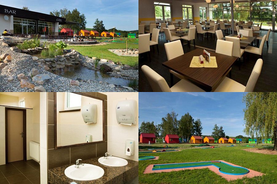 prostředí pěkné,krásné jezírko s rybičkami, toalety mínusové, dětské hřiště neposekané,minigolf super,