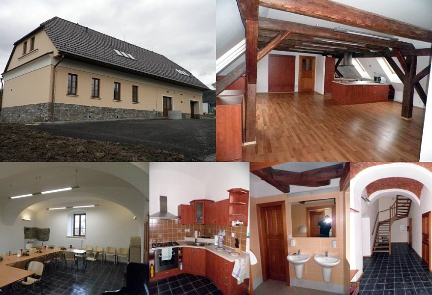 Житло: V podkroví: 2 pokoje o kapacitě 15 a 10 osob, sociální zařízení včetně sprchovacích koutu, plně vybavena kuchyňka (indukční varní deska, lednička, myčka, mikrovlnka a trouba). V přízemí: velka místnost o kapacitě 35-40 osob, která slouží jako společensky sál nebo jídelna, menší místnost vybavená výpočetní technikou (internetová kavárna), kuchyň (kombinovaná varní deska, lednička, myčka, mikrovlnka a trouba), sklad-garáž a WC (také pro imobilní). Objekt je v provozu celý rok (topeni plynové, kachlová kamna, v přízemí podlahové topení). Kuchyně jsou vybaveny pro přípravu jídla pro 40 lidí. V celé budově je přípojka internetu. Velká záhrada pro postavení stanů, táborák atd.