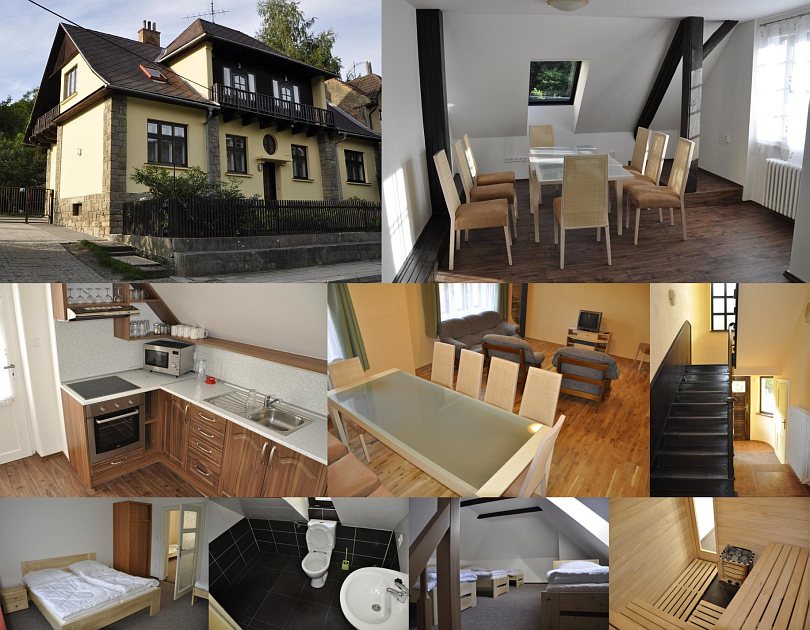 Житло: Zrekonstruovaná chalupa se zachovaným rázem. Přízemí: 2- a 3-lůžkový pokoj, spol. místnost (kabelová TV, DVD), kuchyň (el. sporák s troubou, mikrovlnka, varná konvice, toustovač, topinkovač, lednice, mrazák), koupelna, WC, lyžárna. Patro: dva 2-lůžkové pokoje, 5-lůžkový pokoj s TV, 2x koupelna, kuchyň (lednice, mrazák, el. varná deska, mikrovlnka, varná konvice, remoska, toustovač), jídelna (kabelová TV, DVD). V chalupě je sauna (8 osob), masážní bazén (6 osob), venkovní terasa (gril, udírna, plastový nábytek), zahradní posezení, pískoviště, el. šipky, wifi, elektronické zabezpečení, úschovna kol a lyží, uzamykatelné parkoviště.
