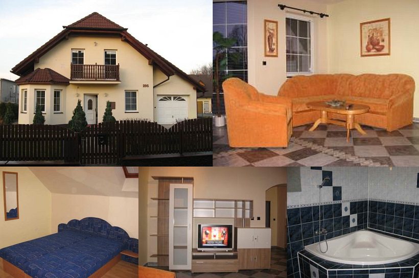 Житло: Domček pre 10 osôb (izby 2x2, 2x3 s možnosťou prístelky), vhodný najmä pre rodiny s detmi. Kompletne vybavená kuchynka (chladnička, kávovar, mikrovlnka, el. sporák). Parkovanie v garáži aj v uzamknutom objekte. Spoločenská miestnosť s TV a DVD, rozťahovacia rohová sedacia súprava, východ na terasu. 2x WC a kúpelňa so sprchovacím kútom a umývadlom.